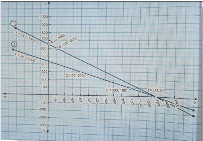 Also plot the points C(400, 300) and D(1000, 100) corresponding to the solutions in table 2 on the same graph paper and join these points by a ruler to get the line CD representing the equation (2),