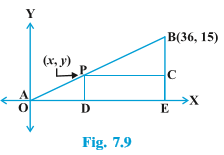 Let the coordinates of P be (x, y). Draw perpendiculars from P and B to the x-axis, meeting it in D and E, Draw PC perpendicular to BE. Then, by the AA similarity criterion,