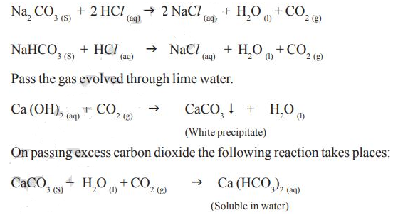 *.Take two test tubes; label them as A and Take about 0.5 gm of sodium carbonate (Na2CO3) in test tube A and about 0.5 gm of sodium hydrogen carbonate (NaHCO3) in test tube B.