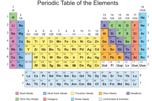 In modern periodic table eighteen groups and seven periods. There are 's' block, `p' block, `d' block and 'f' block elements.