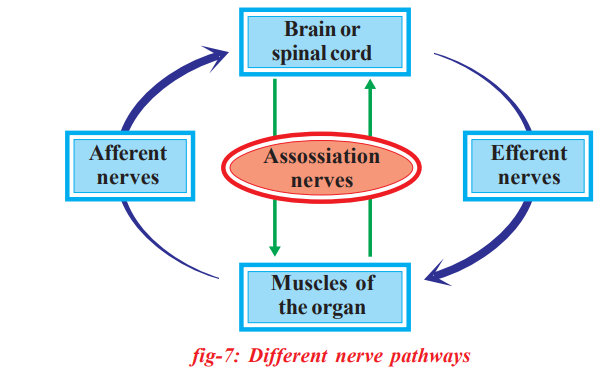 Afferent (or ferrying towards) which carry messages towards the central nervous system (spinal cord or brain) from nerve endings on the muscles of different sense organs that sense the change in surroundings are called stimulus detectors. These are also called ‘sensory’ nerves.