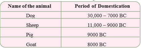 Do you know the period from which wild animals were being tamed? See the following table.