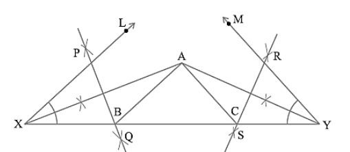 Step 2: Make ∠LXY = ∠B and ∠MYX = ∠C.