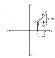 Let A(x1 , y1 ) and B(x2 , y2 ) be any two points in a plane as shown in figure. Draw AP and BQ perpendiculars to X-axis Draw a perpendicular AR from the point A on BQ.