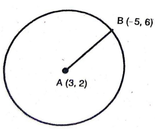 13.Find the radius of the circle whose centre is (3, 2) and passes through (-5, 6).