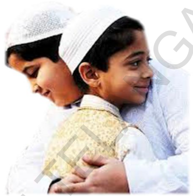 ज. चित्र में दो लड़के है ! वे दोनों मुसलमान लड़के है !वे बडी ख़ुशी से एक दूसरे का आलिंगन करते दिखाई दे रहे हैं!